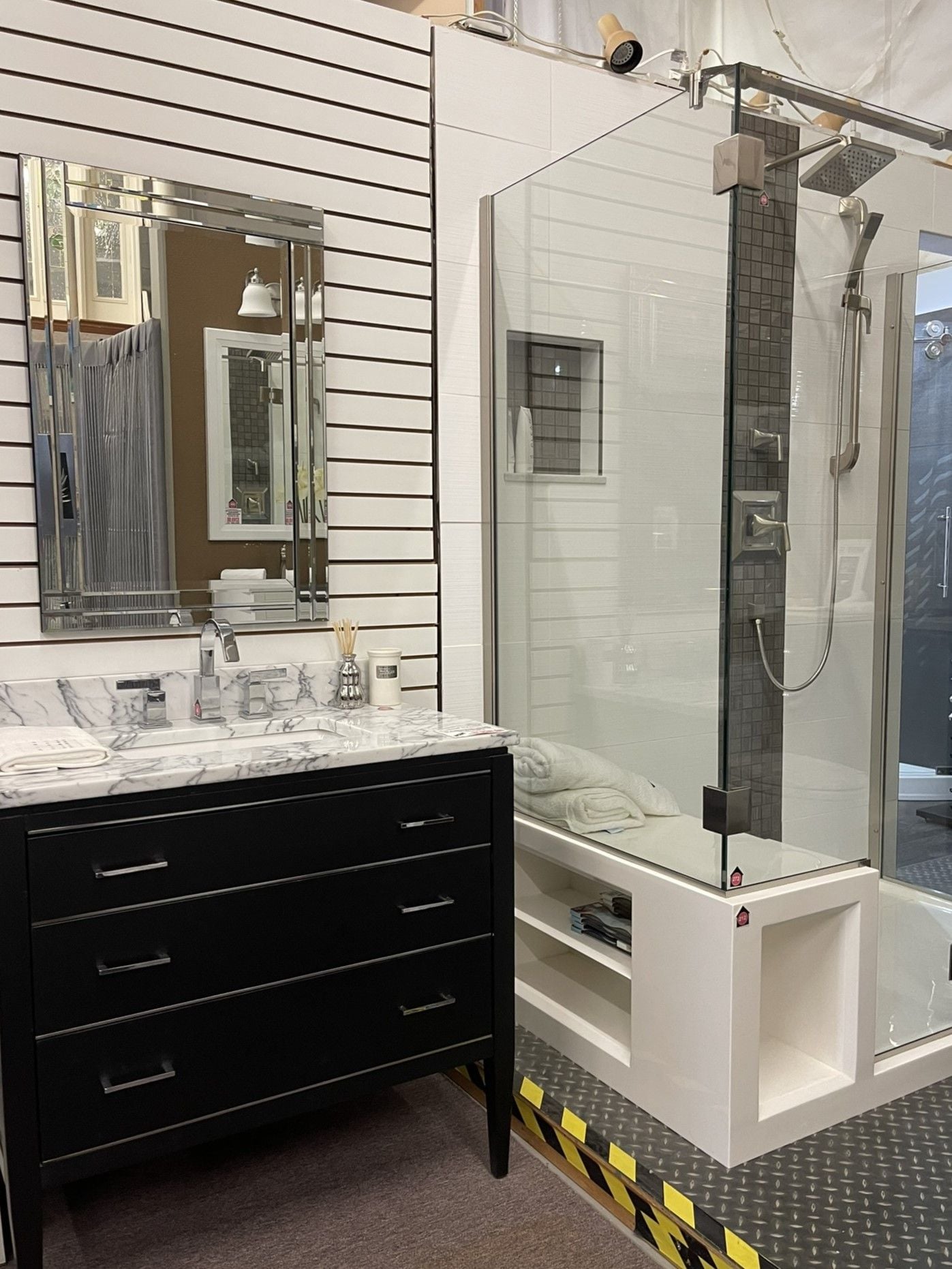 We have packed this space with tons of fixtures, features and options for you to consider. Including, building out vignettes for Kitchen, Bathroom and Interior renovations to see how different design components can compliment each other. These vignettes feature many alternatives in product selection such as ceramic tile, granite & quartz counter-tops, solid surface tops, flooring, plumbing fixtures, a selection of hundreds of cabinet doors and many other options to help deliver you the home of your dreams.